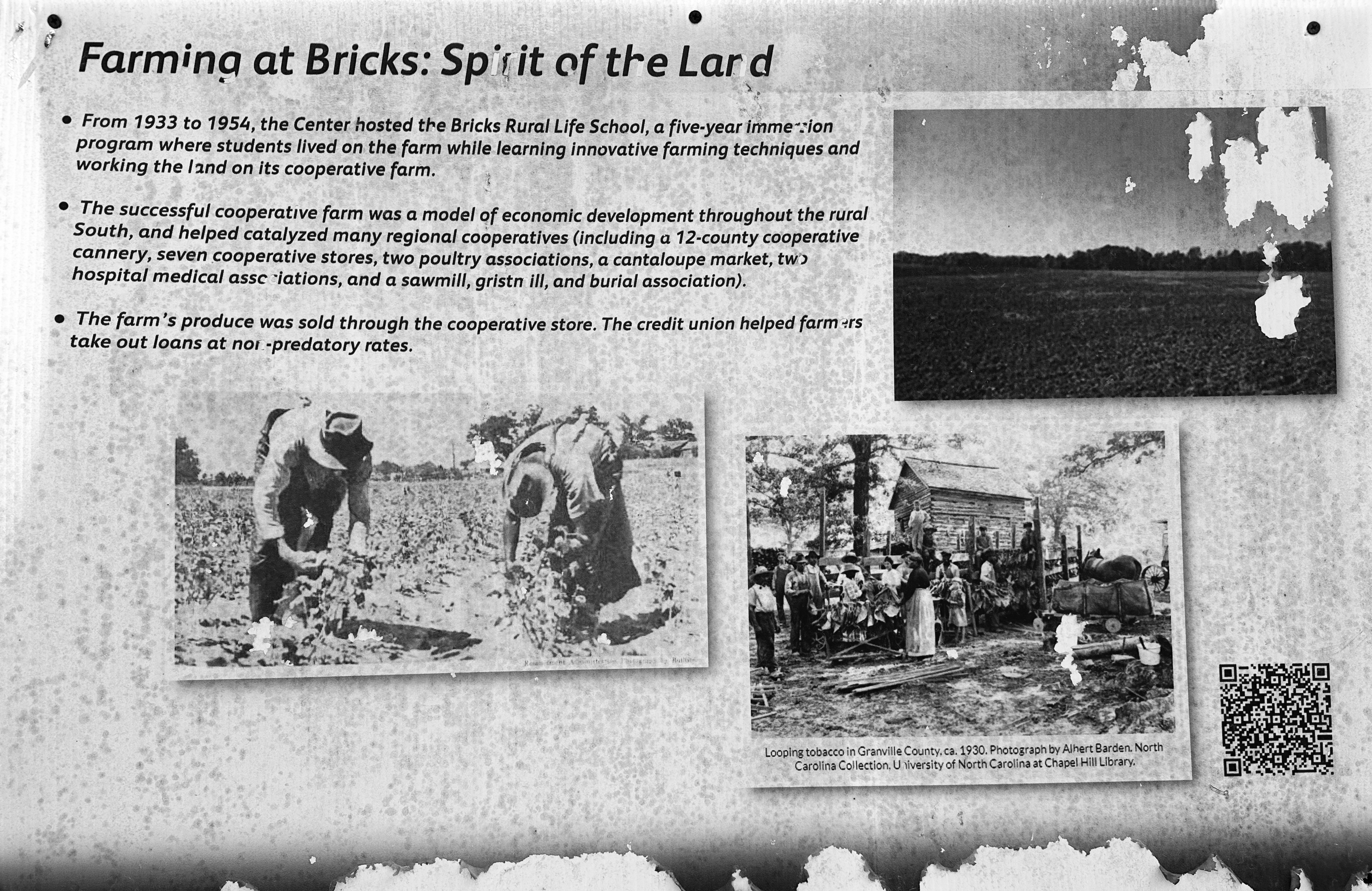 In spite of its history as a plantation (Wiggins land and later the Estes plantation), and much like its great hardwoods lining its dual driveways, in 1895 this space emerged as a place of nourishment and empowerment. In a 1937 publication written by the founder and principal of the Bricks School, Mr. Thomas Inborden shares an impressive list of assets, then later paints a picture of a regenerative agriculture cooperative that for almost forty years was an anchor, a guiding light and a life-line for the surrounding community.