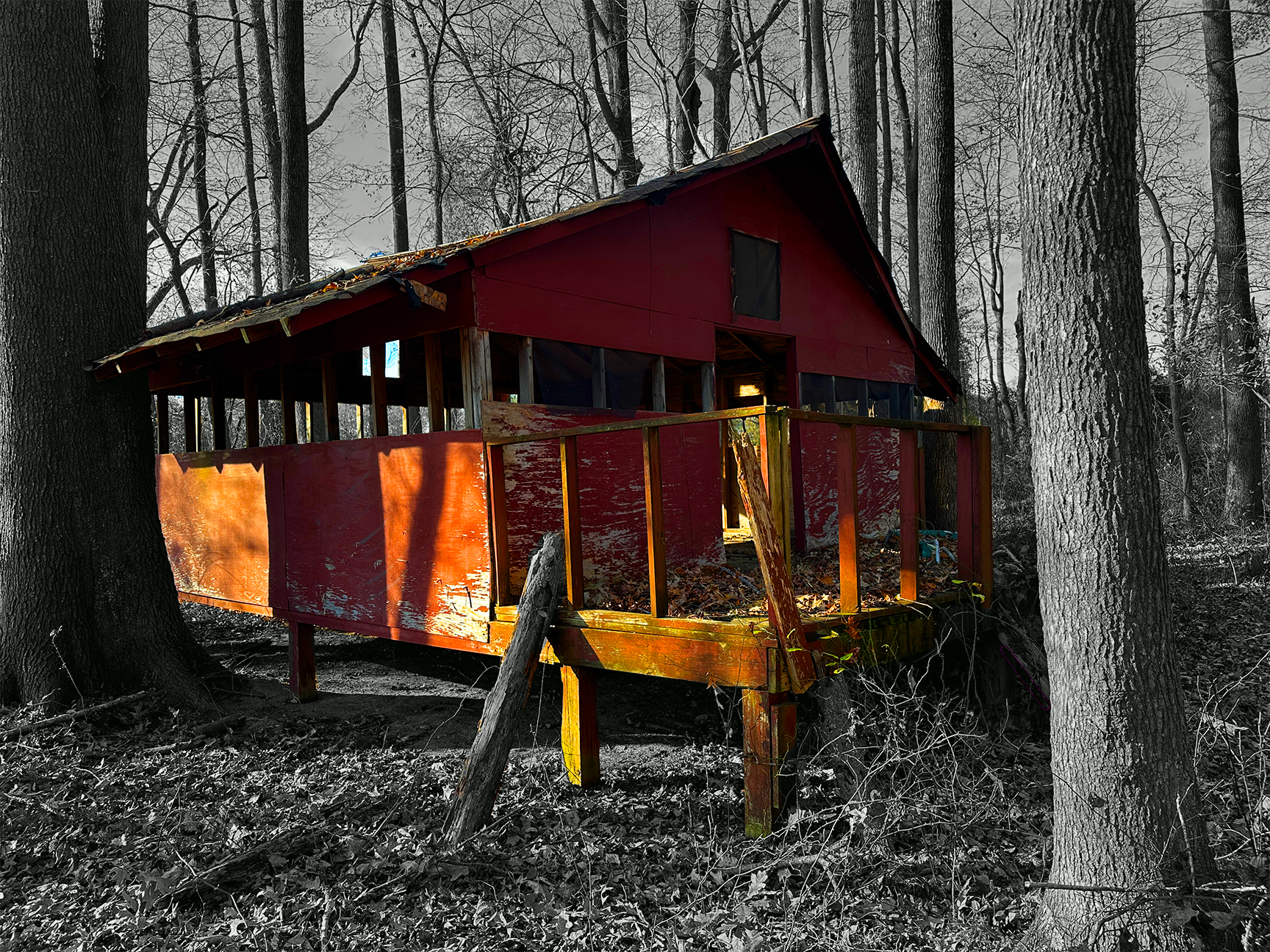 We hopped into the van and continued on past abandoned wells, and forgotten swales meant to protect the property from flooding, and finally through western parts of the remaining agricultural acres. As we passed the first forested area, we wandered in to two structures that were used in the 80’s and 90’s to shelter public school camping groups. So much possibility . . . with such strong bones these structures can be refurbished in no time!