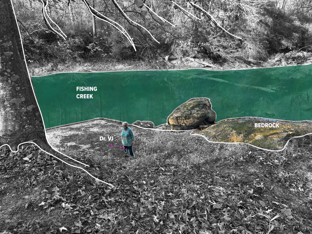 Our anticipation for our last stop was high. Uncharacteristic of a creek, Fishing creek is wide and mighty with deep elbows and gorgeous mossy bedrock on its banks. And then there was profound stillness, and Dr. VJ, Ms. Afraka and I walked down to the water and breathed in!