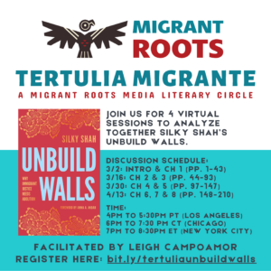 Join Migrant Roots for 4 virtual sessions to collectively analyze Silky Shah's Unbuild Walls. This session focuses on chapter 4 & 5. It will be on Monday, March 30th from 7:00 pm to 8:30 pm.