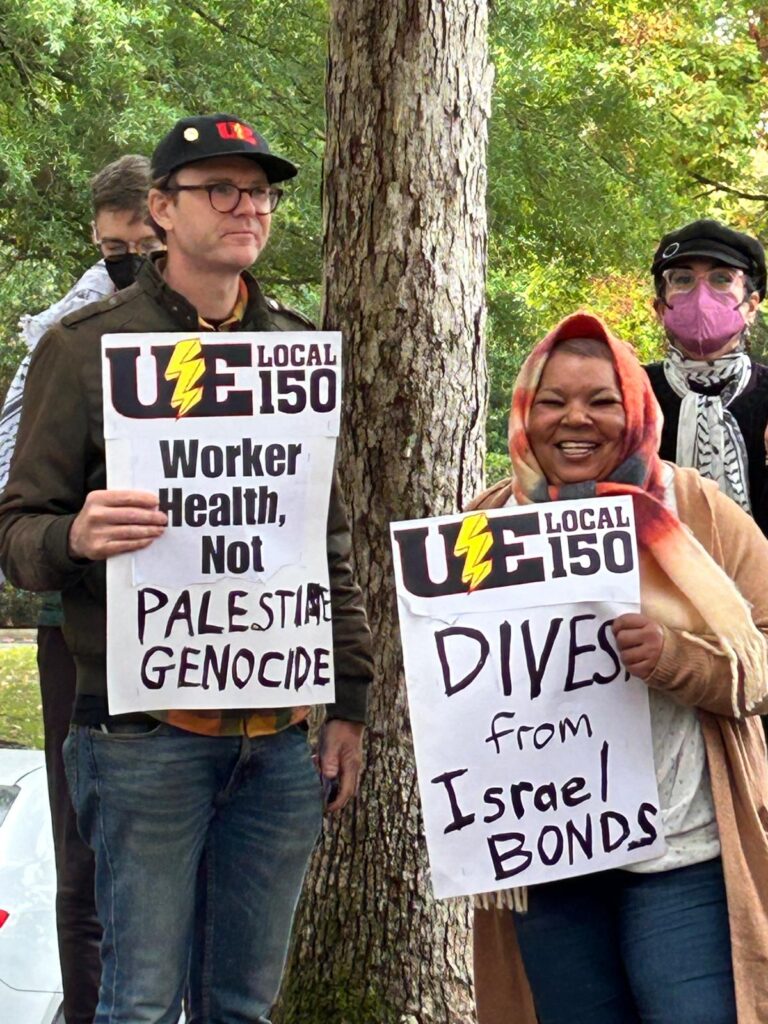 The funds currently in Israeli Bonds should be invested to help fund schools, parks, affordable housing, transportation infrastructure and other life-affirming alternatives here. On behalf of state and city workers throughout NC, we demand that the Treasurer DIVEST from these Israeli Bonds IMMEDIATELY and INVEST these funds in positive ways in the communities of North Carolina.